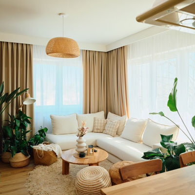 Passend zu den Vorhängen können Sie Kissen aus demselben Stoff wählen.